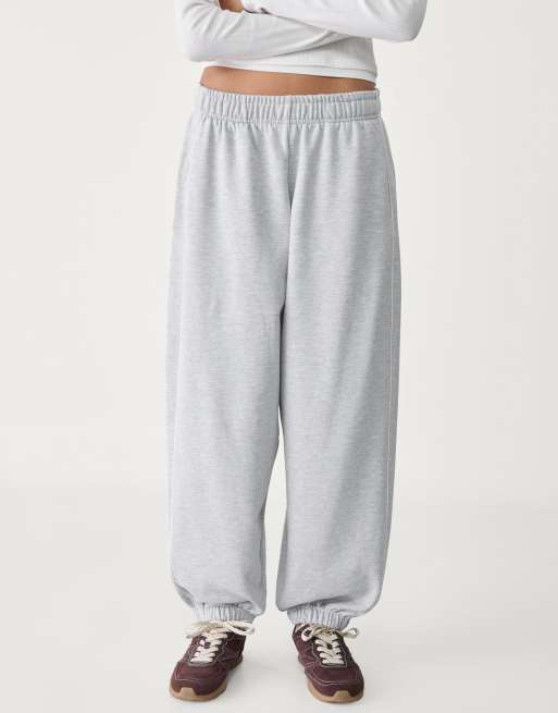 Stradivarius – Gråmelerade mjukisbyxor med passpoaler