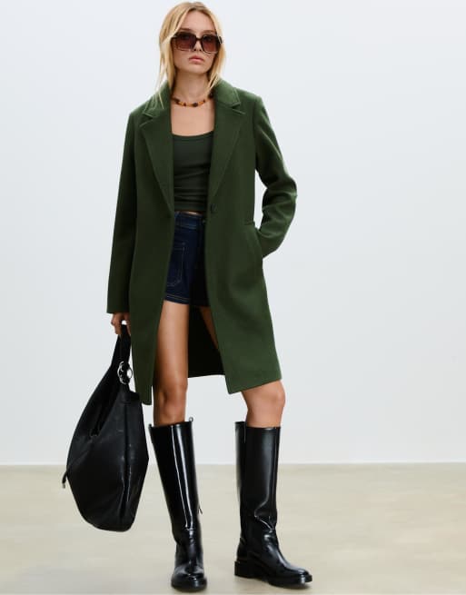 Stradivarius – Grön, mjuk kappa i midilängd med knäppning