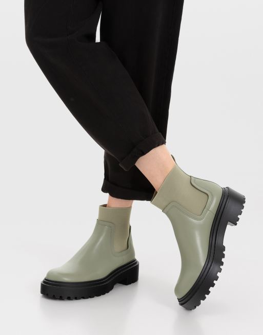 Stradivarius – Gröna, platta chelseaboots med kontrasterande gummisula