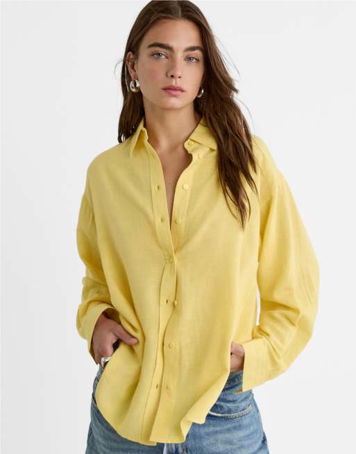 Stradivarius – Gul linneskjorta