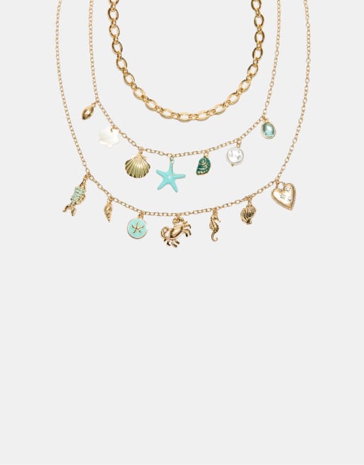 Stradivarius – Guldfärgade halsband med flera havsberlocker, 3-pack
