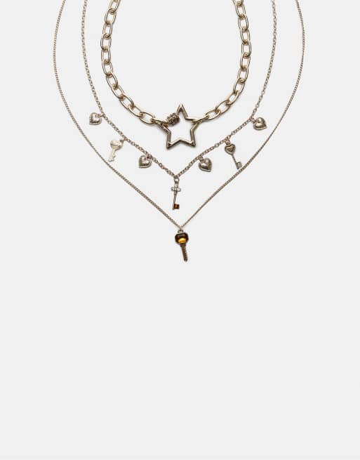 Stradivarius – Guldfärgade halsband med stjärna och berlocker, 3-pack