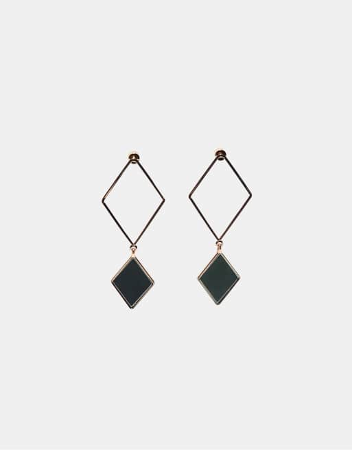 Stradivarius – Guldfärgade örhängen med spegeleffekt och rombdesign