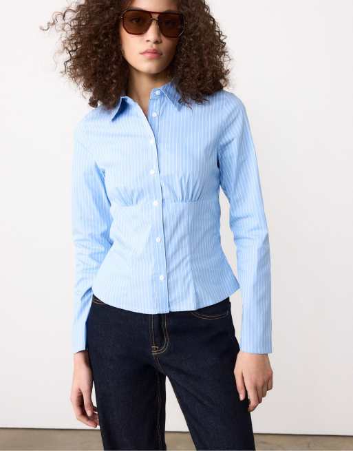 Stradivarius – Himmelsblå, figurnära skjorta med söm under bysten