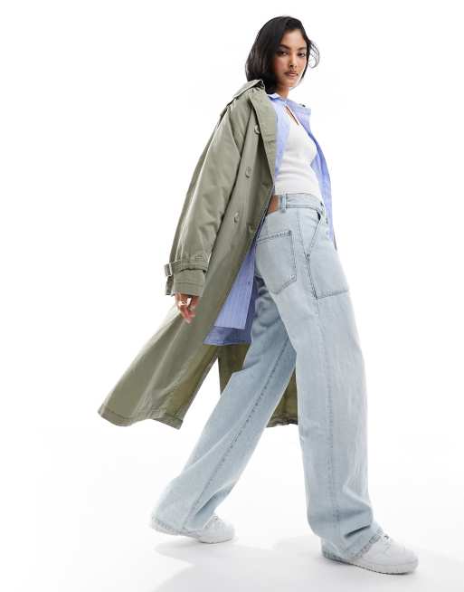 Stradivarius – Kakifärgad trenchcoat med tvättad finish