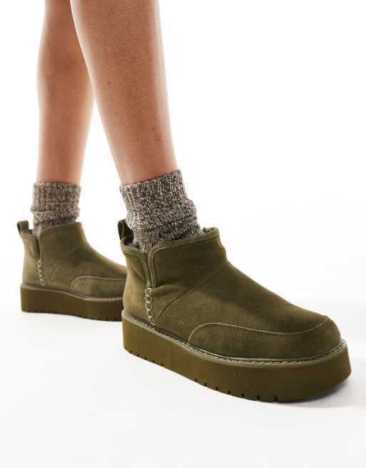 Stradivarius – Kakifärgade, fluffiga boots med platåsula