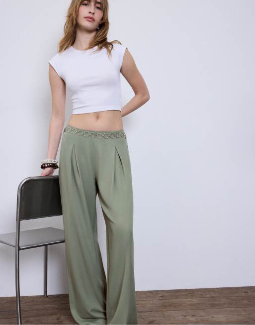 Stradivarius – Kakifärgat, figursytt set i satin