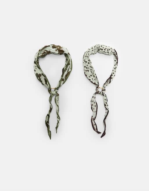 Stradivarius – Kakigrön, prickig och djurmönstrad bandana, 2-pack