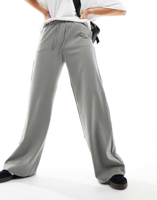 Stradivarius – Kakigröna, figursydda byxor i dra på-stil
