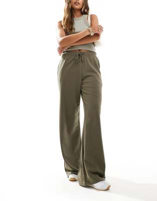 Stradivarius – Khakifärgade mjukisbyxor med vida ben