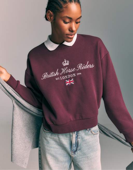 Stradivarius – Lila sweatshirt med pikékrage och broderi