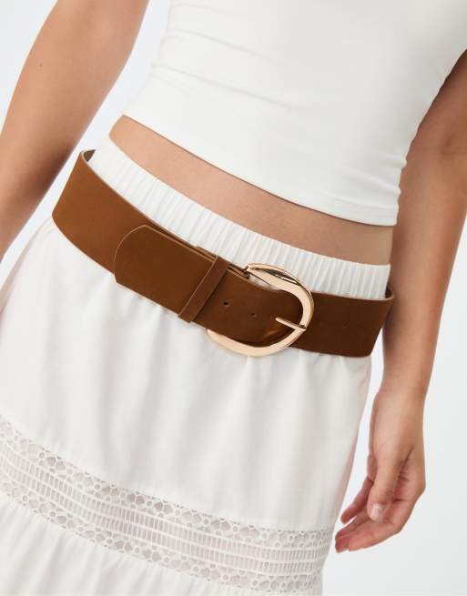 Stradivarius – Ljusbeige, brett skärp med guldfärgat spänne