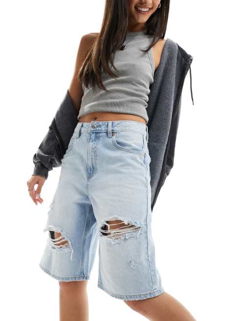 Stradivarius – Ljusblå långa jeansshorts med revor