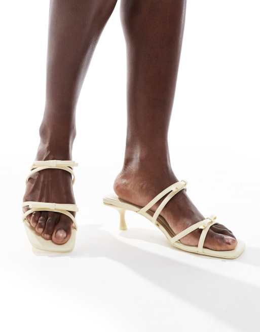 Stradivarius – Ljusgula skor med smala remmar och taxklack