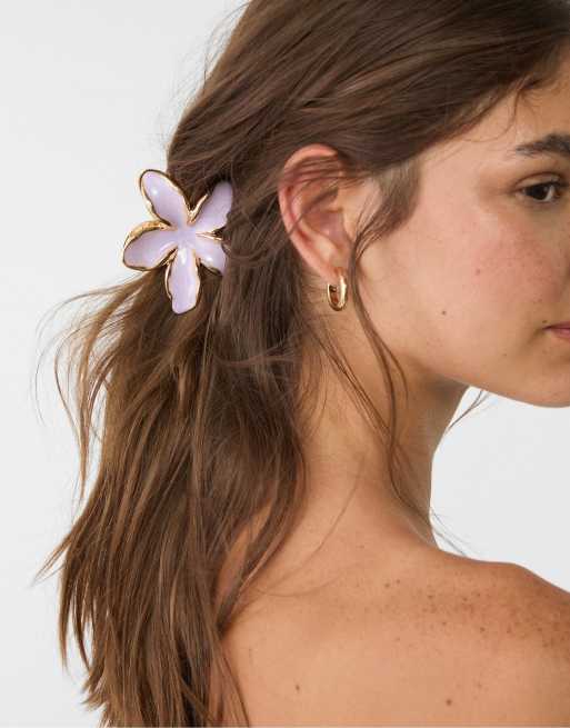 Stradivarius – Ljuslila hårklämma med blomdesign, 3-pack