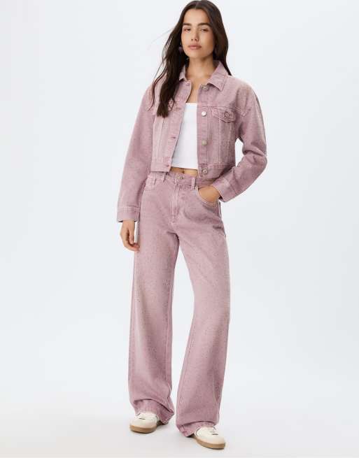 Stradivarius – Ljuslila, tvättade, raka jeans med strass