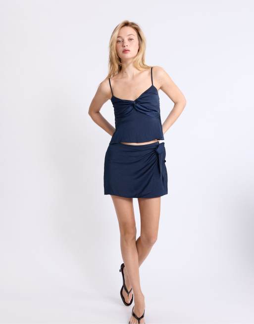 Stradivarius – Marinblå pareo med minikjol i satin