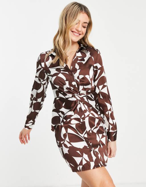 Stradivarius – Mönstrad skjortklänning med snurrad knut framtill