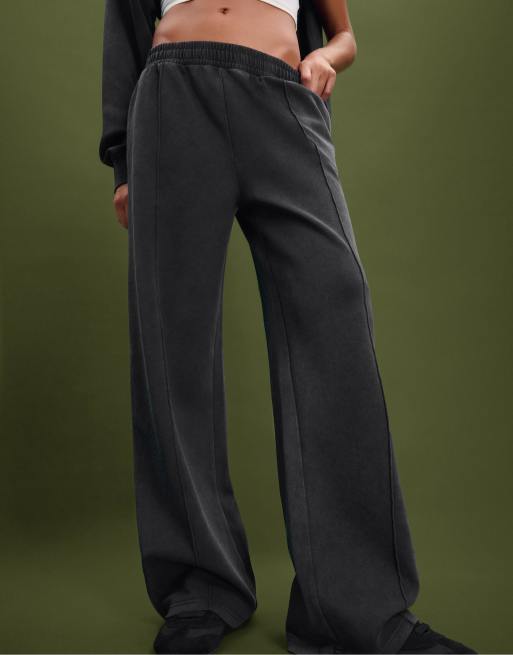 Stradivarius – Mörkgrå joggers med dubbelstickade detaljer i jersey