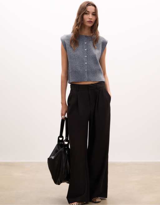 Stradivarius – Mörkgrå, stickad väst med axelvaddar