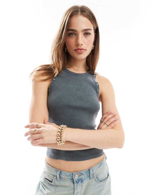 Stradivarius – Mörkgrått linne med nitar