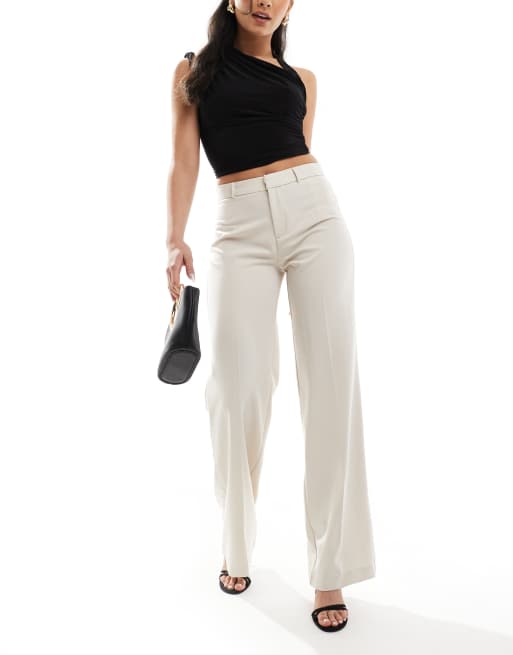 Stradivarius – Naturvita, figursydda byxor med raka ben