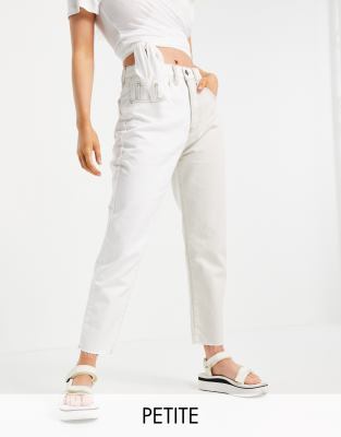 Stradivarius Petite – Gräddvita mom jeans i kontrastfärgade toner och smal passform