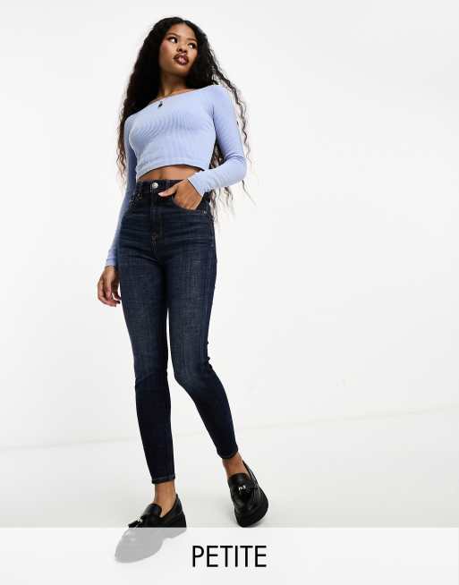 Stradivarius Petite – Mörkblå, skinny jeans med extra hög midja