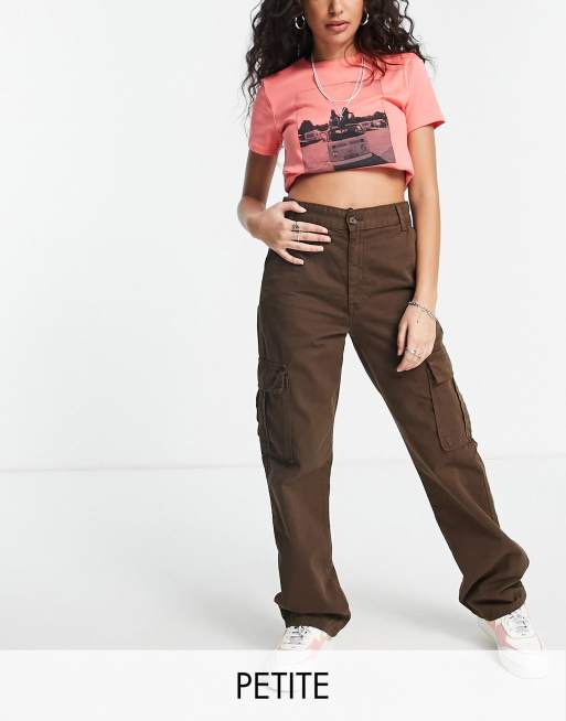 Stradivarius Petite – STR – Blekbruna cargobyxor med raka ben