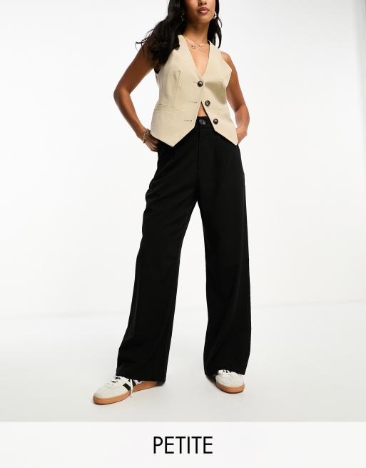 Stradivarius Petite – Svarta figursydda byxor med vida ben