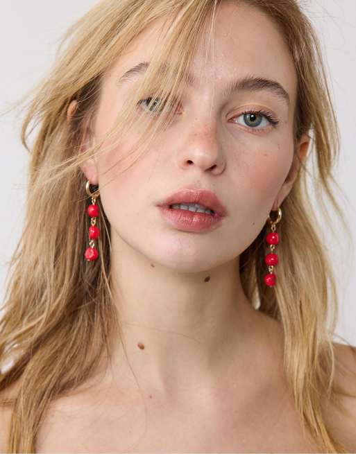 Stradivarius – Röda, grova örhängen, 2-pack