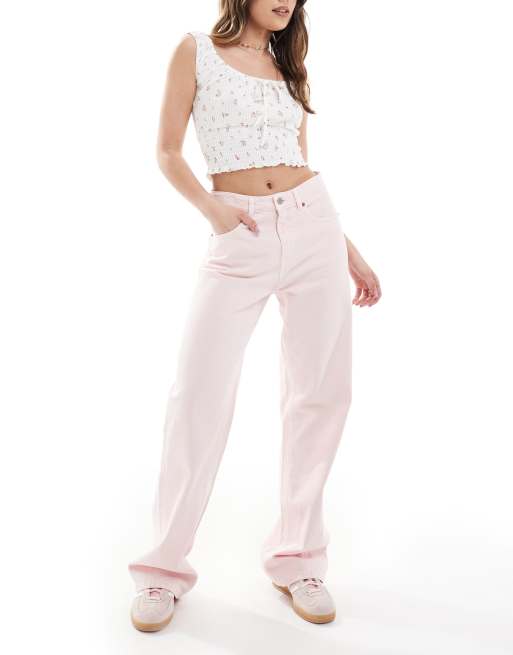 Stradivarius – Rosa jeans i dad-modell med vida ben