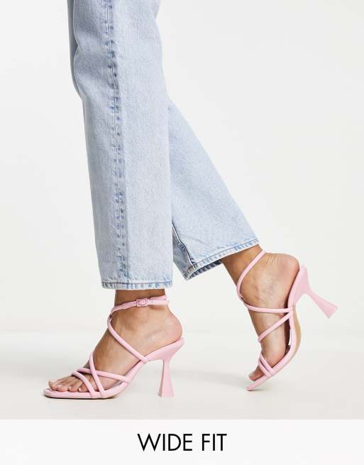 Stradivarius – Rosa sandaler med taxklack, smala remmar och bred passform