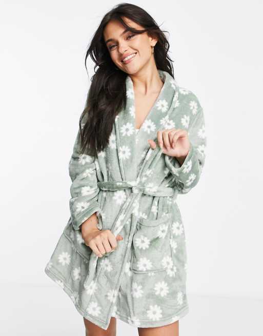 Stradivarius – Salviagrön blommig morgonrock