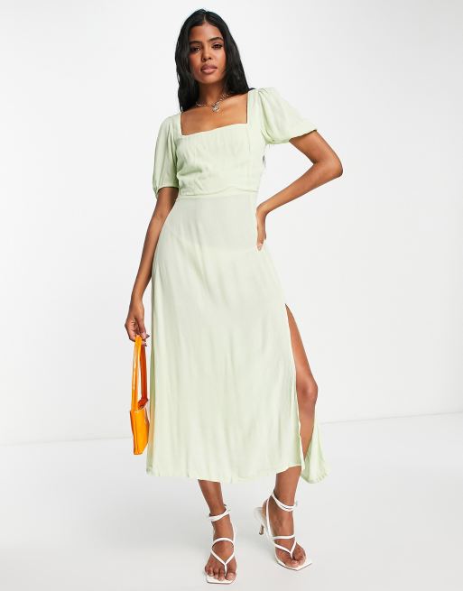 Stradivarius – Salviagrön tea-klänning i midilängd