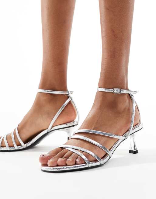 Stradivarius – Silverfärgade sandaler med ankelrem