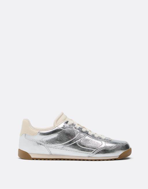 Stradivarius – Silverfärgade sneakers med metallisk effekt