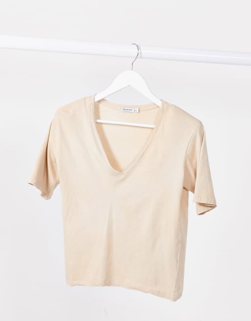 Stradivarius – Stentvättad t-shirt med axelvaddar