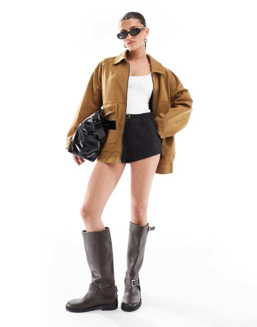 Stradivarius – STR – Brun bomberjacka i mockaimitation