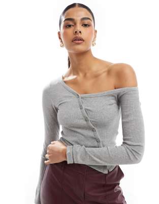 Stradivarius – STR – Grå topp i jersey med asymmetrisk knäppning