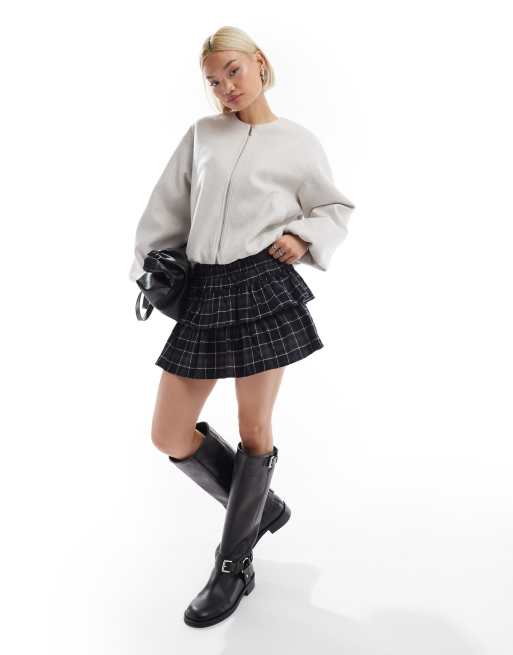 Stradivarius – STR – Marinblå, rutig skort med volang