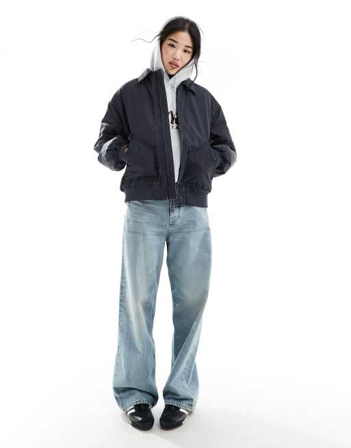 Stradivarius – STR – Marinblå tvättad bomberjacka