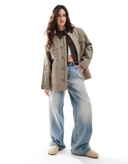 Stradivarius – STR – Svart arbetsjacka med manchesterkrage