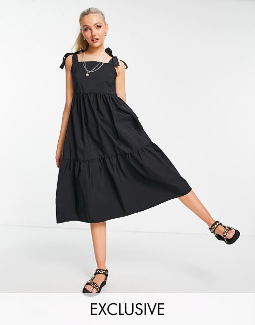 Stradivarius – Svart midiklänning med knytning på axlarna