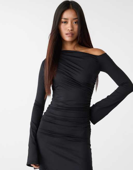 Stradivarius – Svart miniklänning med asymmetrisk fåll