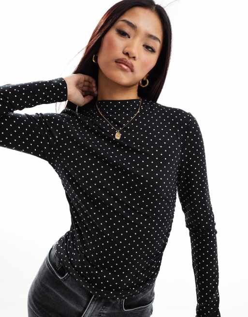 Stradivarius – Svart, prickig topp med rynkade detaljer