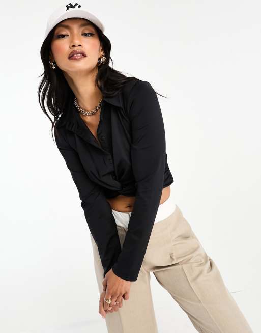 Stradivarius – Svart skjorta med snurrad knut framtill