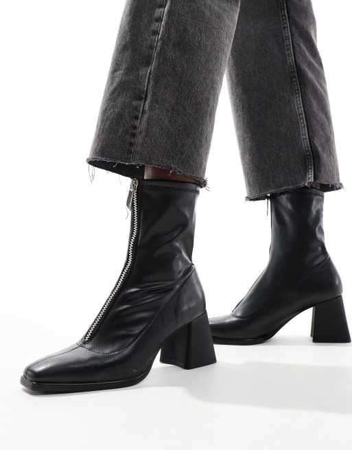 Stradivarius – Svarta ankelboots med dragkedja framtill