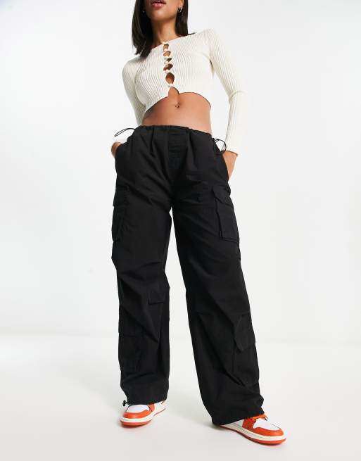 Stradivarius – Svarta fallskärmsbyxor i nylon och cargomodell