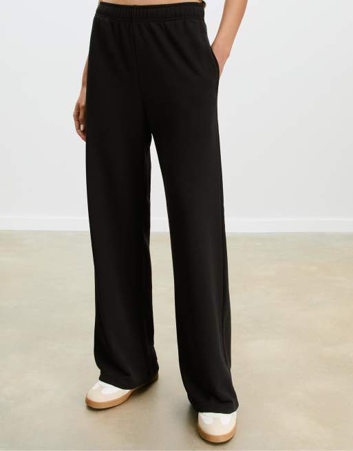 Stradivarius – Svarta joggingbyxor med vida ben